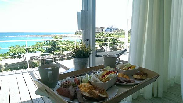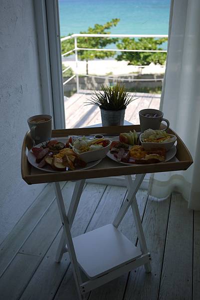 ↓把早餐搬來落低窗的地方,看著海景享用早餐