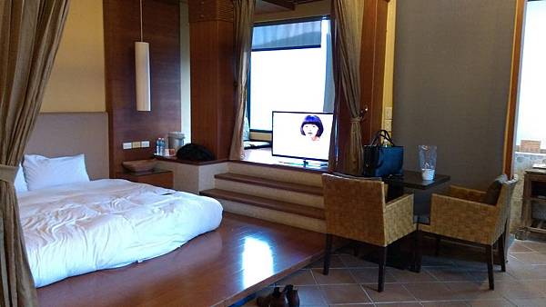 電視的位置有點奇妙,沒辦法很舒服的看電視,電視後方是一個小和室有一大片的景觀窗