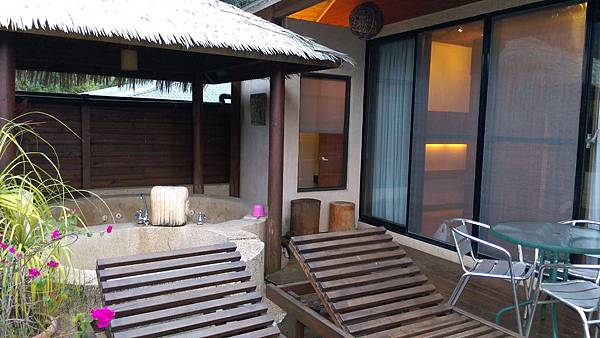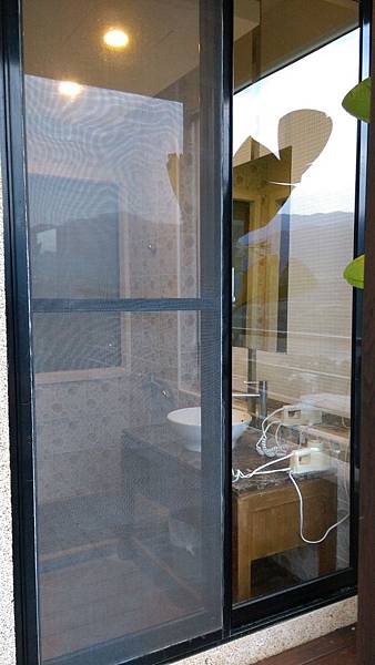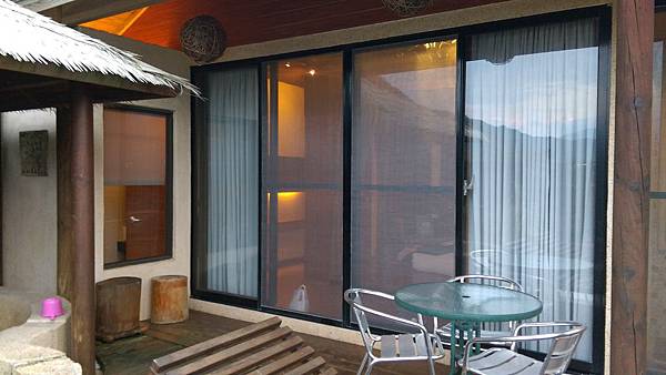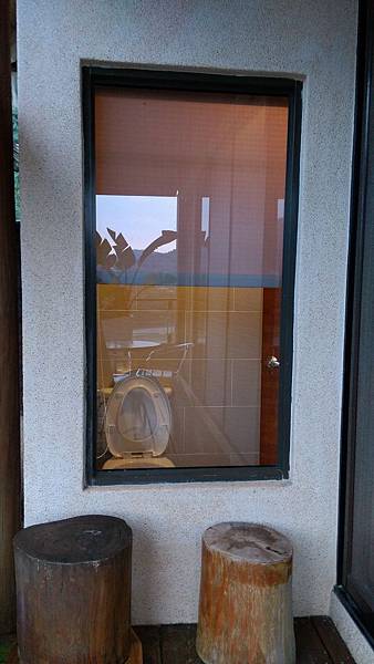 哈..從外面露天浴池的陽台可以看到廁所...有點害羞,還好窗簾放得下來![]()